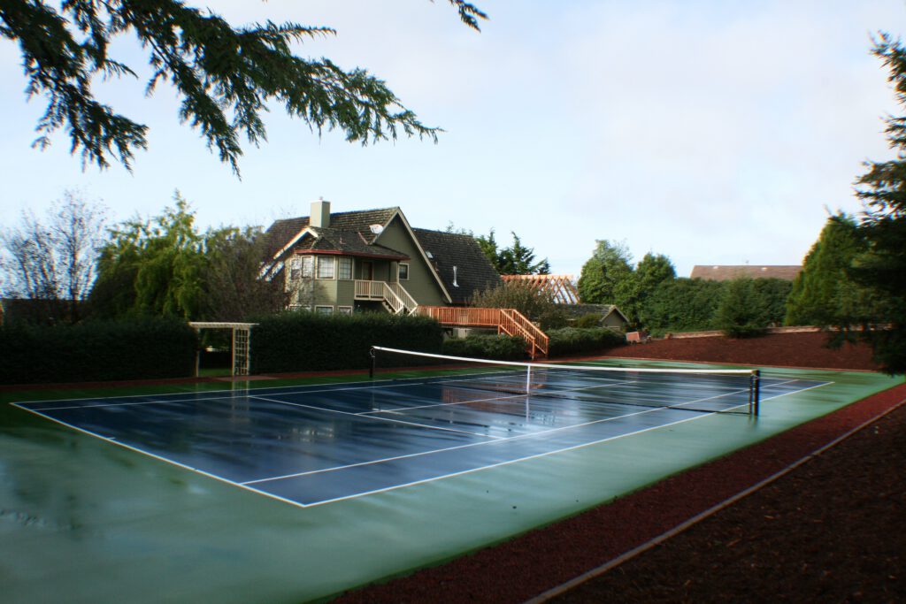 Remodel the existing garage into a master suit. Add a new detached garage and new tennis court.